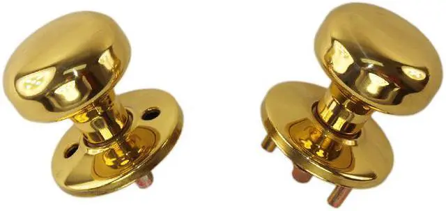 Maxtech 10332 Polished Brass US3 Interior Exterior Knob Rose Kit For Thru Bolted locks, and ornamental iron gate door mortise lock sets, specially designed as a replacement for thru bolted locks like the Maxtech# LKMT1033D Or Marks# 22AC. Each spring loaded spindle is 9/32" square, and the mounting screws are included for both 1-3/8" and 1-3/4" inch doors. Knob and rose are per-assembled, packed one pair per box.
