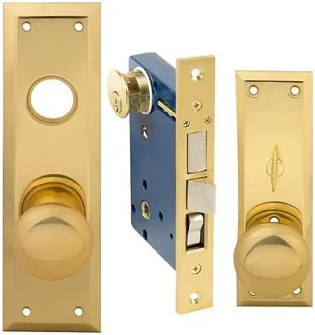 Maxtech (Like Marks 91A/3-X) 1033AXL, Polished Brass, Wide Face Plate, Left Hand, Heavy Duty Mortise Entry Lockset Surface Mounted Screw-on Knobs Lock Set. 2-1/2" Backset, Deadbolt: 1", Wide