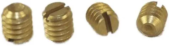 Progressive 1420 Pack Of 4 Polished Brass Standard Knob Set Screws 1/4" - 20 TPI, specially designed for the progressive Model #'s 2400 & 2600 knob set, however, these knob set screws fit most mots knob sets with a 1/4" - 20 threads per inch slot.