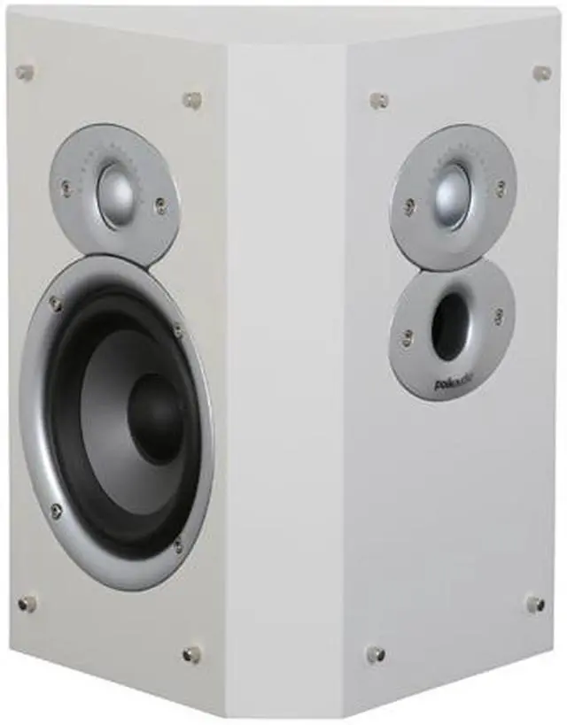 Design-enhanced surround diffusion characteristics on the new FXi Bi-Directional Surround Speakers include triangular cabinets that aim the drivers and tweeters in opposing directions to produce a more realistically diffuse wavefront and wide, lifelike imaging of surround-sound FX, and a conveniently located bipole/dipole switch for the most flexible placement options and highest performance surround effects. Floating grilles complement the real wood finishes and softened contours of the new FXi Series Surround FX Loudspeakers. Metallic elements add a touch of modern style to these classic Polk Audio high performance speakers.