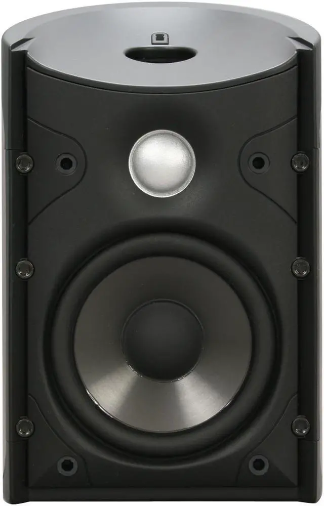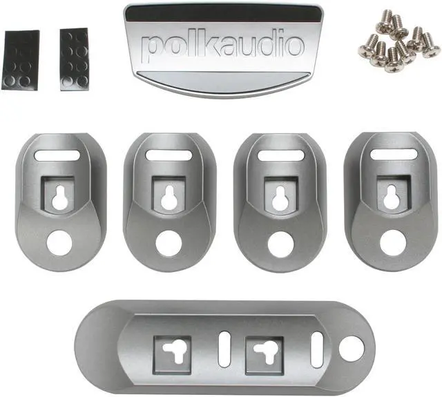 The heavy duty aluminum enclosures have a non-resonant shape that eliminates any standing wave resonance for amazingly lifelike sound. The center channel has an exclusive cradle that lets you adjust the angle for optimum sound whether it is placed above or below the television. The fronts and surrounds can sit on a bookshelf or mounted on the wall using the included swivel brackets.