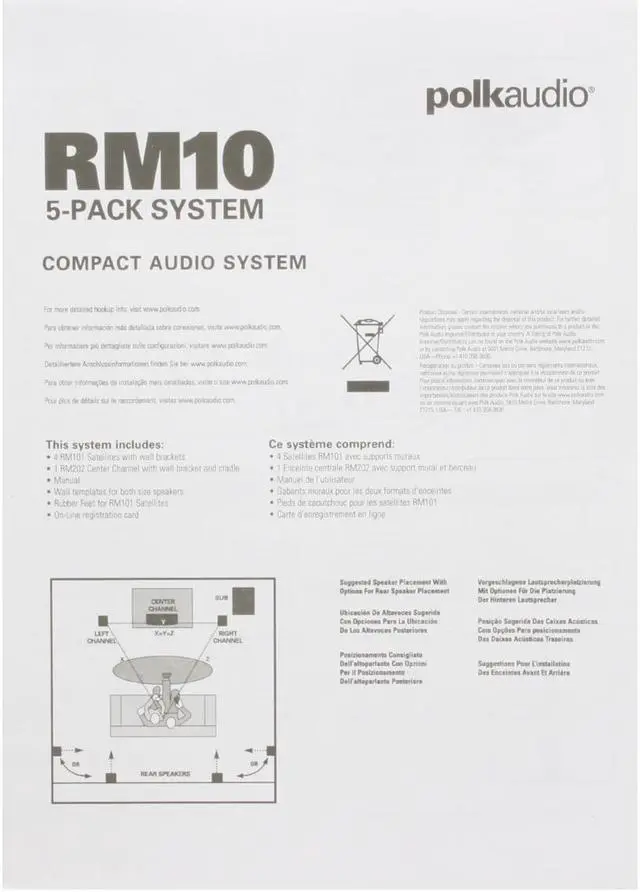 5-channel Surround SoundThe Polk Audio RM10 compact home theater speaker system consisting of a center channel speaker and 4 satellite speaker arrays delivers 5-channel surround sound that fully envelops you from all directions.