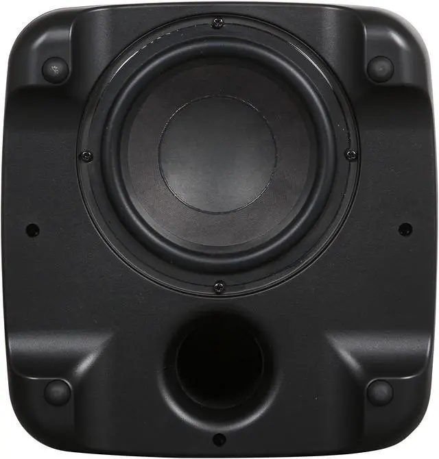 Compact 120 Watt wireless subwoofer features 6.5-inch downward firing poly-composite Dynamic Balance® woofer and flared J-port for big bass with low distortion.