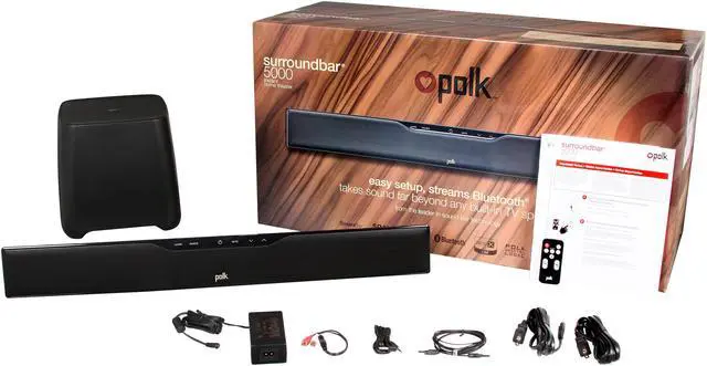 Ah, to have a flat panel speaker that matches the flat panel television. No more speaker boxes strewn about the room, no more wiring clutter. And yet, no sacrificing audio quality or deep bass effects for movies and even gaming. We can dream, can't we? And we can stream, now, too! Because the incredible SurroundBar 5000 IHT features Bluetooth Wireless Technology for clear, loss-less streaming from mobile gadgets like smart phones and tablets. Now your music can be heard, in dynamic CD-quality reproduction, with no wires and no complex setups or calibrations. Polk engineers have designed the ultimate Bluetooth speaker that's also the ultimate single-speaker home theater & subwoofer system: The SurroundBar 5000 IHT. Keep streaming!