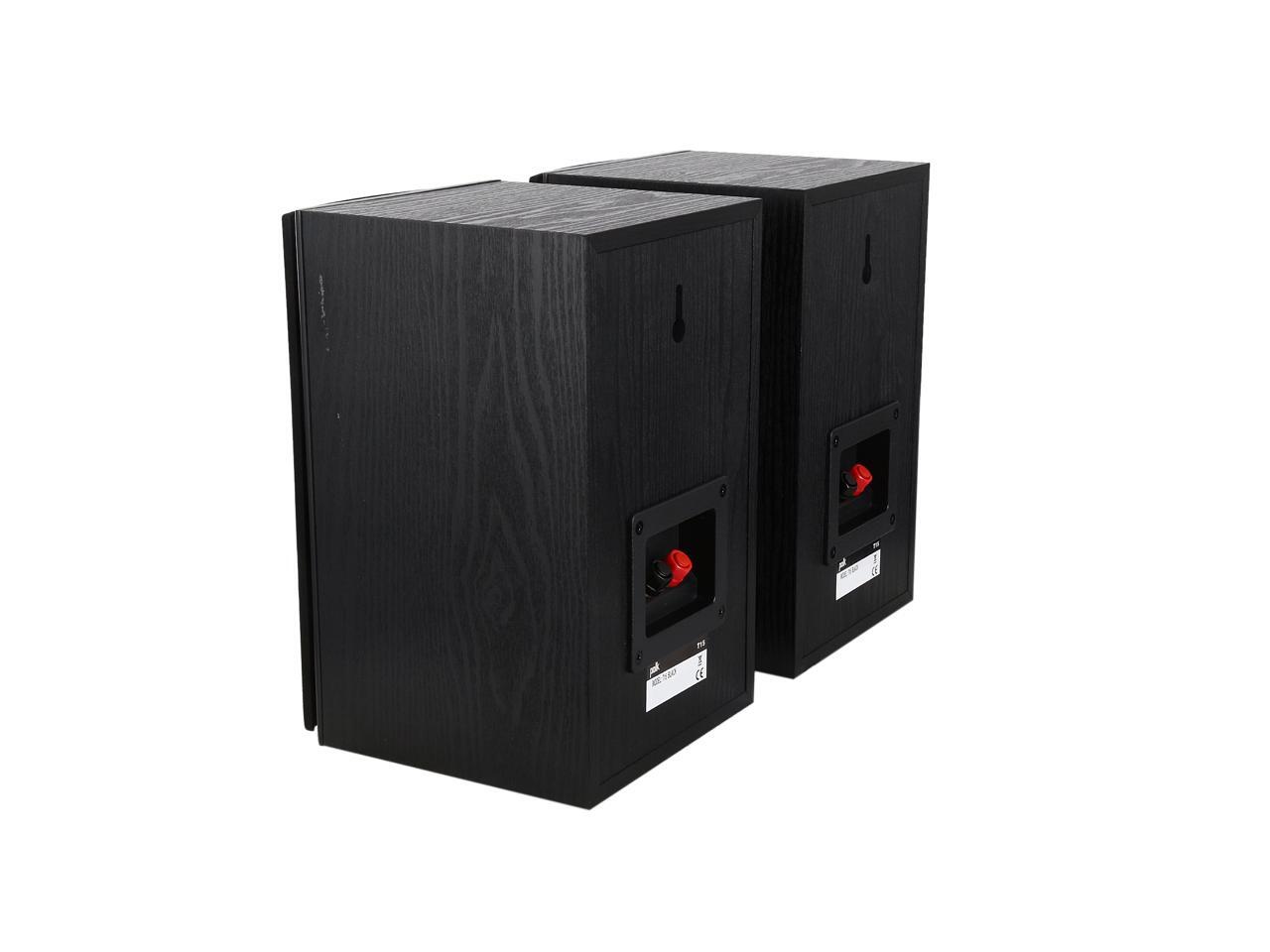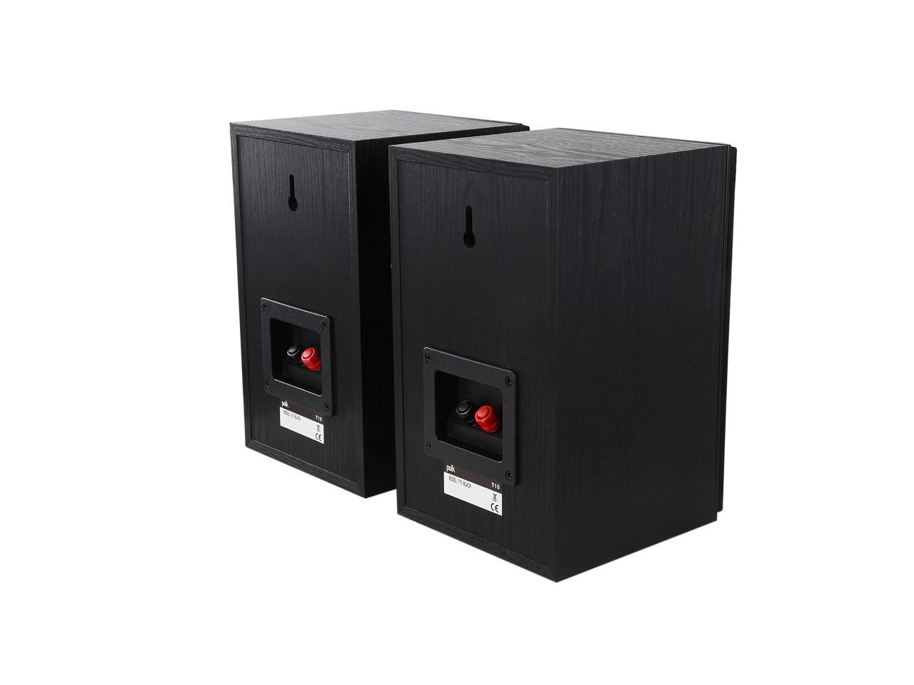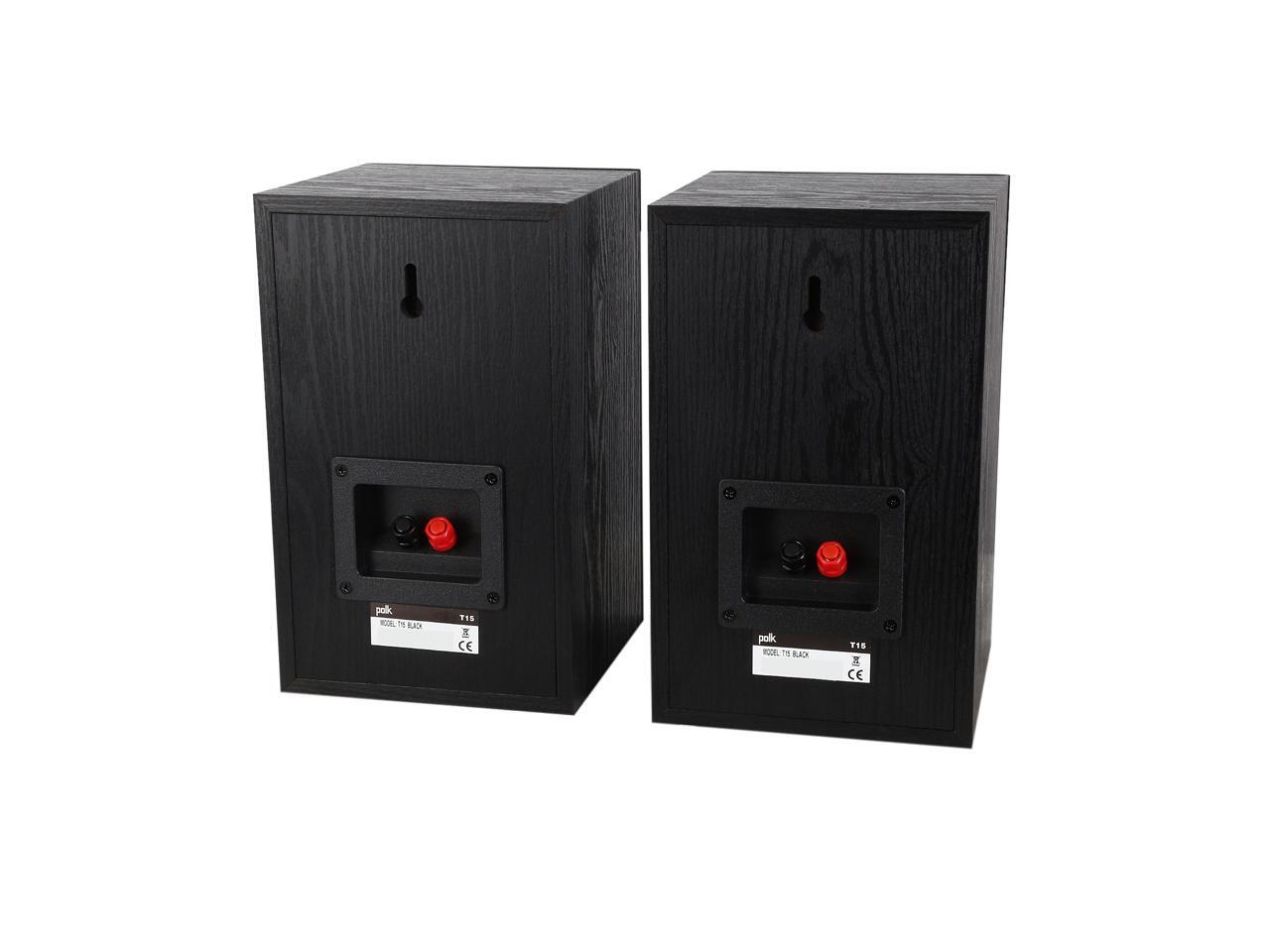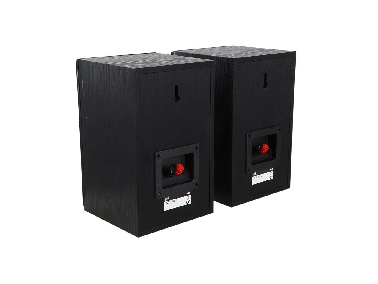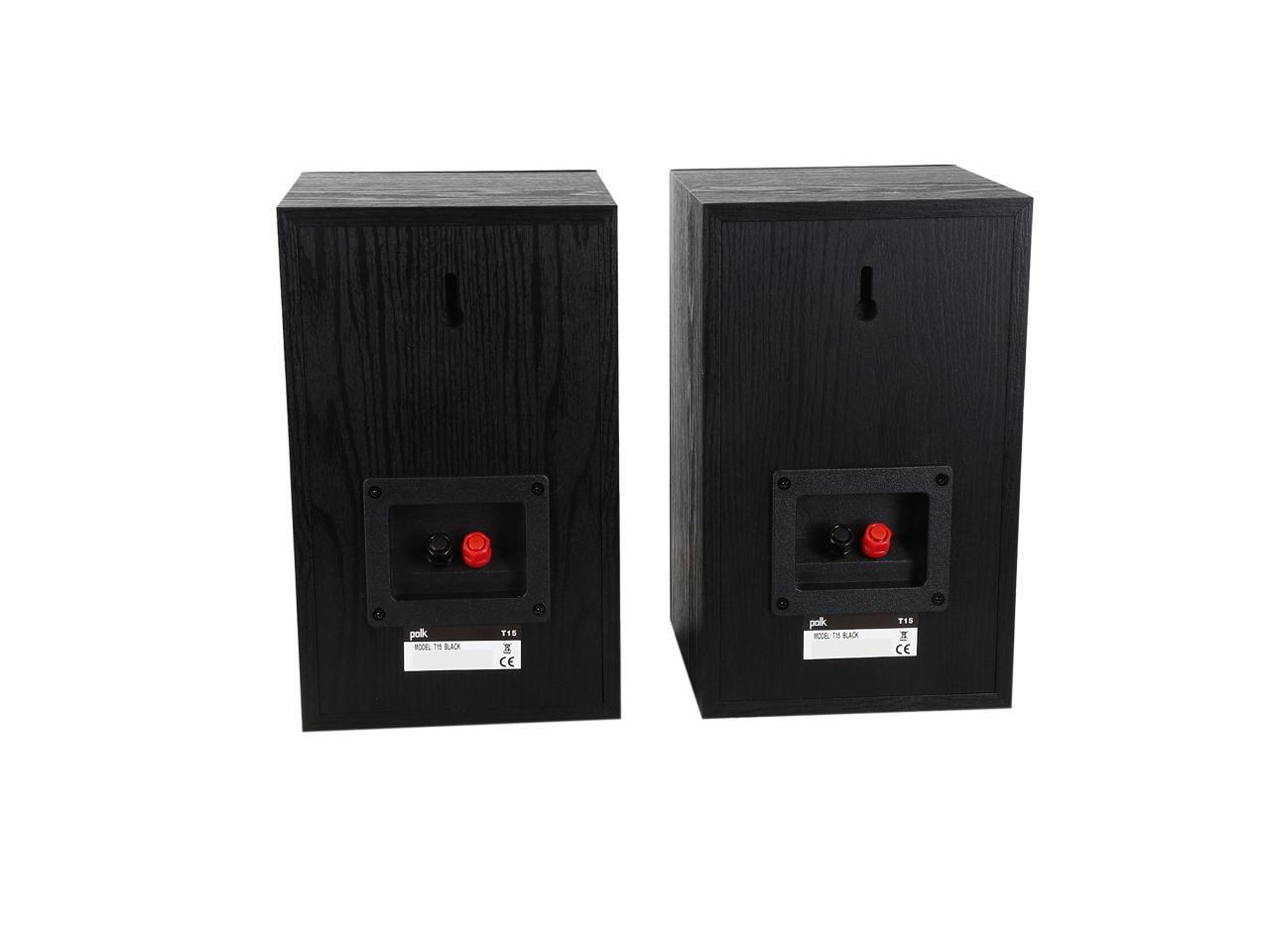 | Features | The T15 are those bookshelf speakers whose high versatility is built to impress. Engineered with Polk's proprietary Dynamic Balance technology, they're primed to improve your home theater experience and take on your entire arsenal of tunes without fail. Think brighter highs, a wide-open mid-range and surprising bass response-the perfect entry into high-performance audio. The best part is that it won't drain your wallet! Go big on great sound made for everyone. Add the T15 bookshelf stereo speakers to your home audio setup today. The Polk T15 home theater and music bookshelf speakers are as versatile as they come, bringing incredible home theater sound and concert-quality music all in a classic look-and at a price that won’t break your budget. We took the DNA from Polk's instant-classic Monitor Series loudspeakers and re-imagined them for today's audio lover. With one 0.75” silk dome tweeter, a 5.25” composite driver, and a performance tuned front-firing bass port-all engineered with Polk’s proprietary Dynamic Balance technology-your sonic visions of brighter highs, a wide-open mid-range and surprising bass response are now a reality. The acoustically-inert, furniture-grade MDF cabinet construction also reduces resonance and distortion, so you get rich, detailed audio the way it's meant to be heard-minus the muffled noise and rattled disruption inherent in low-quality, lesser-than audio equipment. Designed to produce a wide dispersion sound, setting up your T15 bookshelf speakers is super straightforward and easy no matter where you place them. You can even use them as front or rear speakers in your home audio setup, too. Their 5-way binding posts provide an array of secure wire-hookup options. Plus, they're designed to work with most home theater receivers, stereos or home theater processors. Whether you're settled in for a little tube time on the couch or you’ve got the music turned up, the T15 is performance tuned to en |