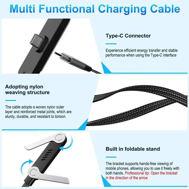 2-in-1 Charging Cable Phone StandThis charging cable with stand completely transforms how you position your device. Simply prop it up for hands-free viewing in portrait or landscape modeeffortlessly handling streaming media, gaming, or video calls.