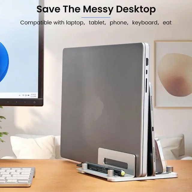 The Vertical Laptop Stand is more than just a space-saverits a smart, sturdy, and versatile solution for modern workspaces. Whether you're using it as a MacBook vertical stand, a dual laptop stand, or a compact laptop storage rack, its robust aluminum build and thoughtful design provide reliable support and improved airflow to keep your devices cool and organized. Easy to adjust and built to last, its the ideal laptop holder for desk setups everywherehelping you declutter, protect, and optimize your tech life.