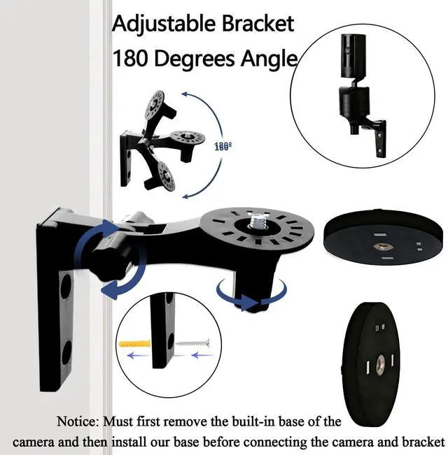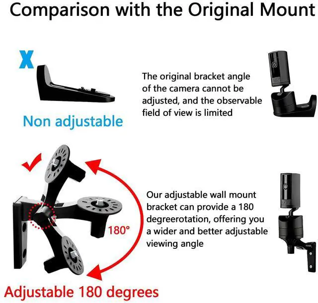 The security camera mount can provide 180 degrees rotation, gives you a much wider and better adjustable viewing angle(Replacement for the fixed original stand)