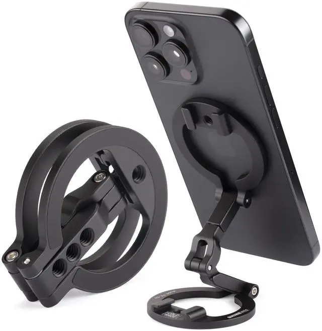 Dual-MagSafe Magnetic Ring Holder - Foldable Flip Design with Cold Shoe Mount & 1/4"-20 Threaded Hole (for Tripods/Stands, Dual-Phone Use)