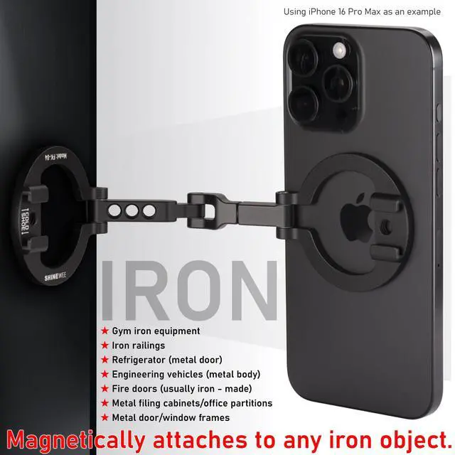 This holder is equipped with MagSafe magnetic rings on both ends: one end securely attaches to any MagSafe-enabled phone, while the other end adheres to ferrous (iron-containing) objects (e.g., refrigerators, metal shelves, or iron stands). The magnetic rings support foldable and flip movements, allowing you to freely adjust the phone’s angle for optimal viewing—perfect for hands-free use scenarios like following recipes in the kitchen, watching videos on a metal desk, or keeping your phone accessible in the garage.