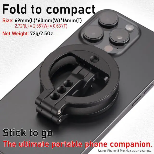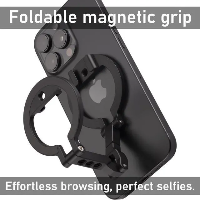 This versatile accessory combines a dual magnetic ring phone stand with a handheld grip function. Equipped with two strong magnetic rings, it securely holds your phone (ideal for MagSafe-enabled models or phones with magnetic cases) for stable placement. When folded, it works as a compact phone stand—perfect for hands-free viewing, video calls, or typing on desks, tables, or countertops. When fully expanded, it transforms into a comfortable handheld grip, giving you better control while shooting videos, taking selfies, live streaming, or scrolling on the go. Its lightweight, foldable design also makes it easy to carry in bags or pockets for daily use.