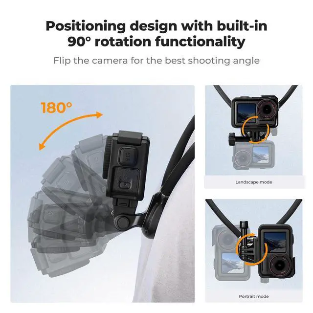 Adjustable Design: Flexible mounting position allows for various shooting angles and perspectives, built-in rotation function allows switching between landscape, portrait, and side-on shooting modes in a second
