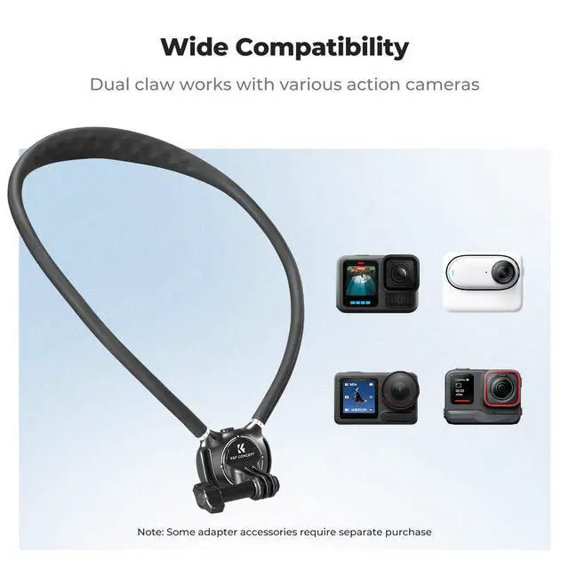 Wide Compatibility: Compatible with GoPro Hero 13/12/11/10/9/8/7/6/5/4/MAX, Insta 360 Ace/Ace Pro/Ace Pro 2, DJI Osmo 360 Nano Action 3/4/5 Pro, AKASO and more action cameras with dual claw