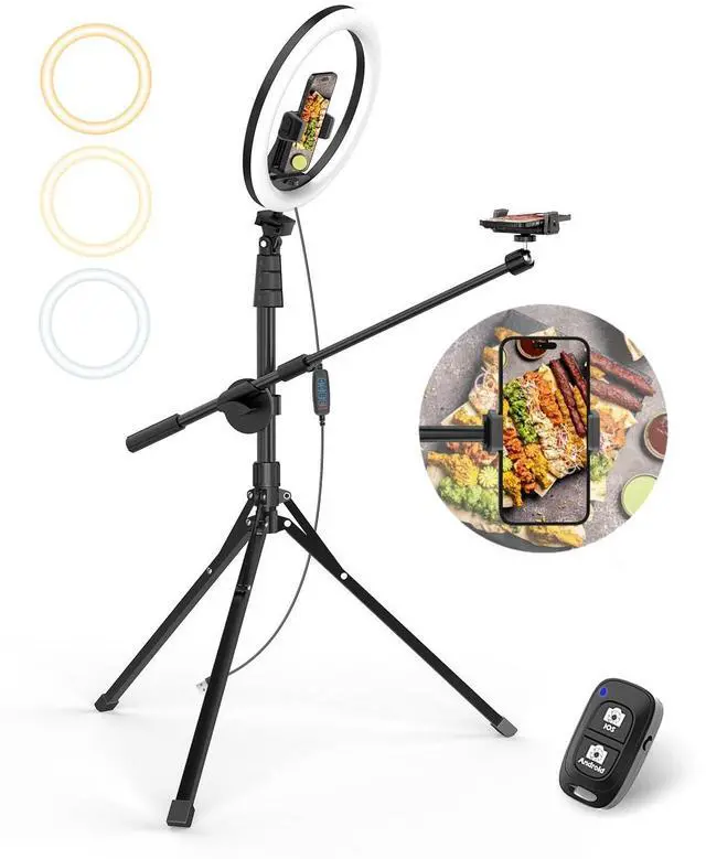 • All-angle Shooting: Easily switch from overhead shots to angled views with the adjustable metal arm. Whether you're filming baking tutorials, crafting videos, nail art sessions, or product showcases, this setup adapts to your workflowno limits, just perfect angles