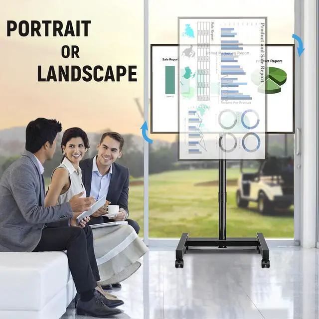 - Tilting and rotating mount, portrait or landscape mode, height adjustable tv stand offers you best viewing experience