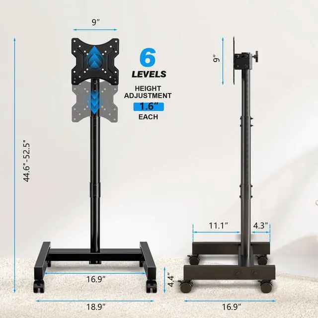 - Mobile TV stand is super portable, easy to assemble and solid quality, holds your 13-50 inch tv safely