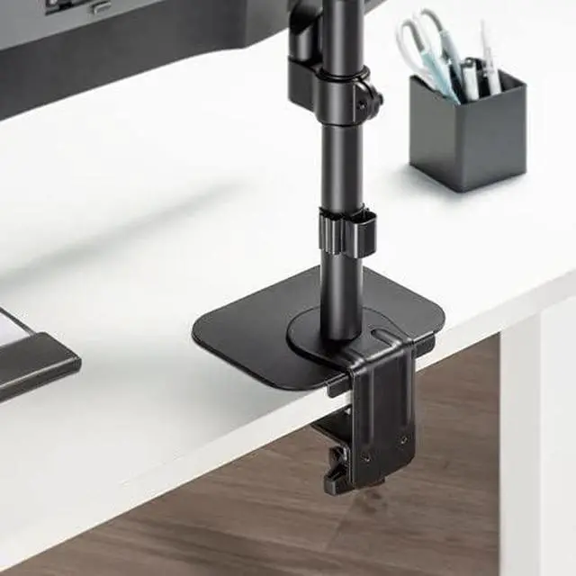For users experiencing instability in their monitor arm mount, this reinforcement plate provides the most simple and affordable solution for a more firm, secure and safe monitor arm installation. The large and sturdy mounting plates distribute weight load while protecting the desktop from damage. A two-piece design with preset holes allow the plates to work with most any clamp or grommet base. Anti-slip pads ensure stability while preventing surface scratches. Available in black, white and silver to adapt to different desks and monitor arms.