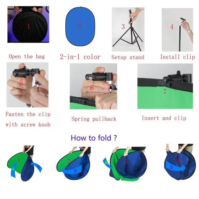 5 x 7 feet/150x200cm Blue and Green 2-in-1 Collapsible Pop-up Background Panel is a perfect for most of the studio and location situations. 2.2ft/ 67cm when folded.