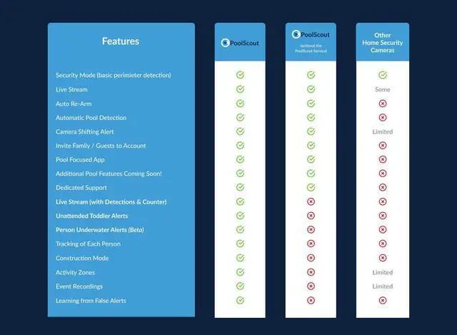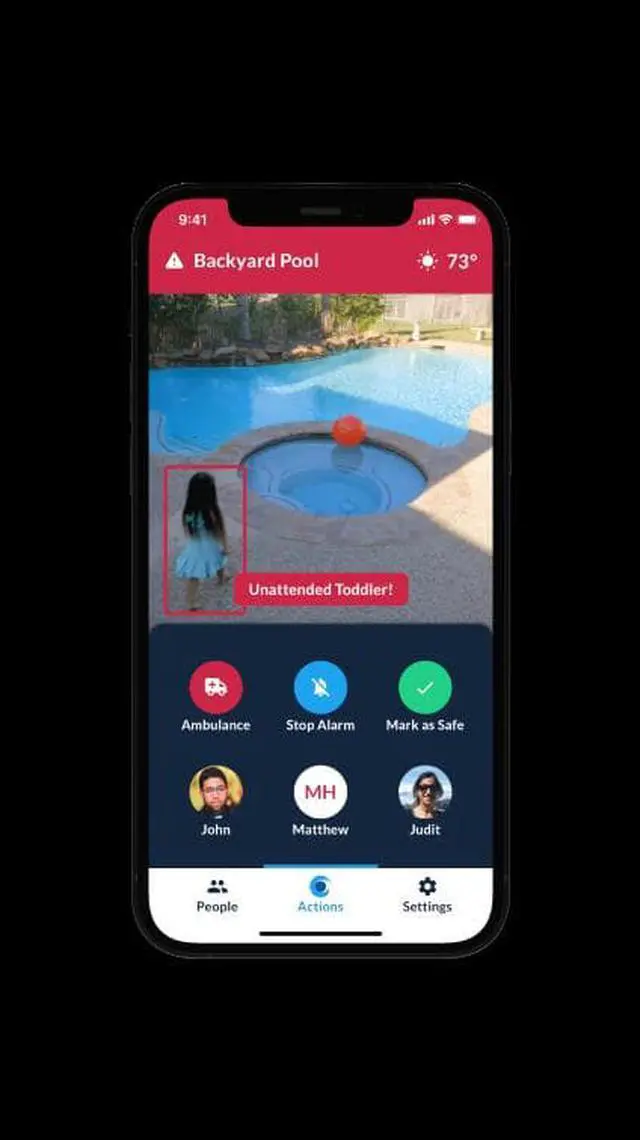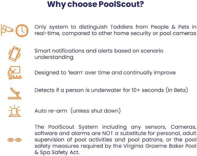 PoolScout is the only system that can distinguish between toddlers, people and pets* in real-time.