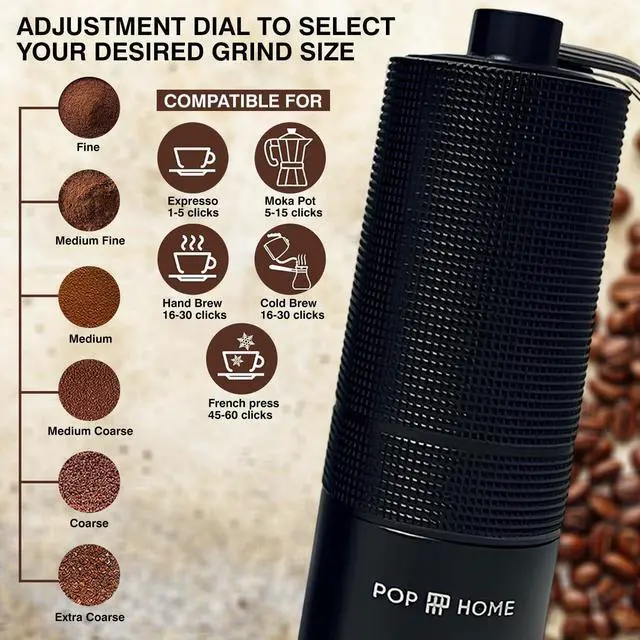Whether you need a fine powder for Espresso, medium for Drip, or coarse for French Press, the intuitive adjustment knob gives you total control. No batteries or cords requiredjust pure, tactile precision.