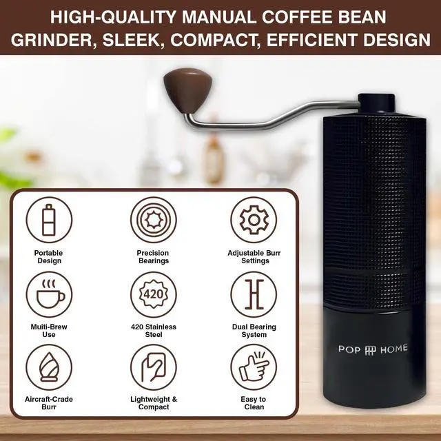 Stop settling for inconsistent blade grinders. The PopandParty Manual Coffee Grinder features a professional-grade 420 Stainless Steel Conical Burr that cuts beans with precision rather than crushing them. This ensures a uniform grind size for superior extraction and a cleaner, more aromatic cup of coffee every morning.