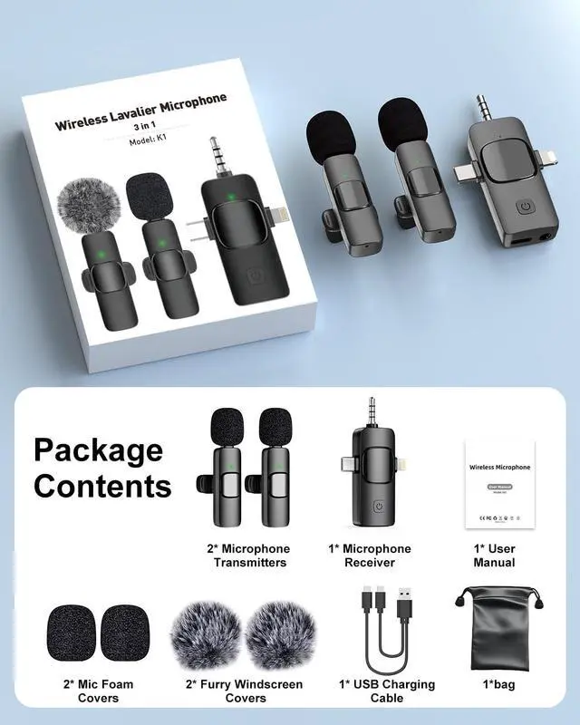 Noise Reduction MicrophoneWith the upgraded stable omni-reducing AI chip, the microphone for iphone can reduce noise and pick up your voice, providing a clear timbre for every content creator. And it has a one-button mute function, so you can turn the mini microphone on and off by pressing it once, without restarting it. Just enjoy your creation with this microphone.'''