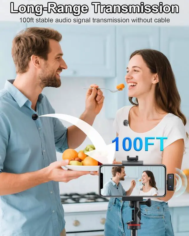 Enjoy reliable audio transmission within a 100ft range, ensuring high-quality sound even at a distance. Whether youre moving around or filming in large spaces, this microphone keeps your audio clear and stable.