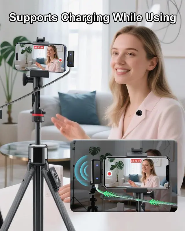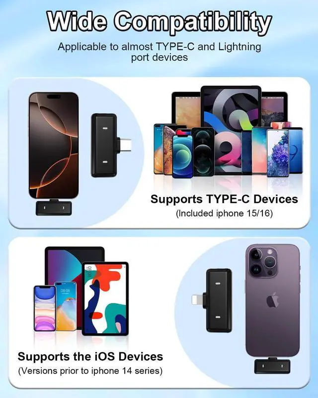 This wireless mini microphone features a simple design with no complicated setupjust plug and play! It works seamlessly with both iPhone and Android devices, making it perfect for meetings, interviews, live streaming, and more.