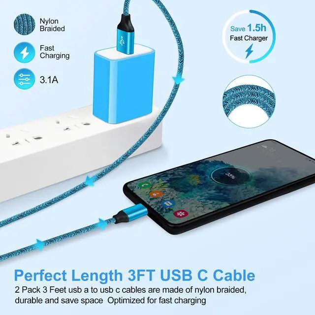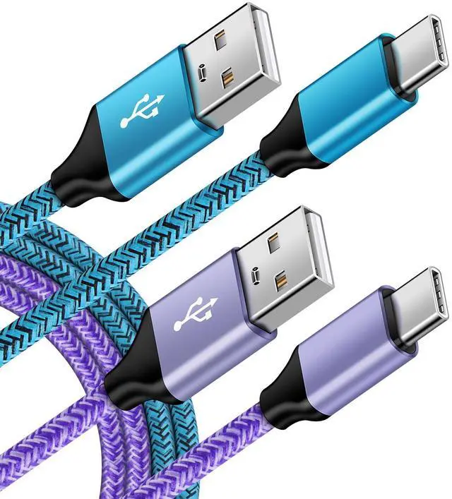 2 Packs 3 Feet USB C Chargine Cord (Blue Purple)