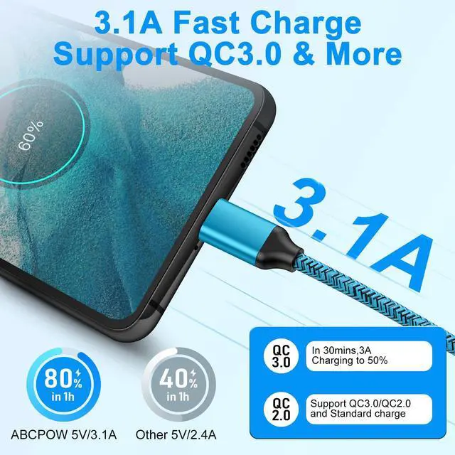 The usb type c android cable are suitable to support QC 2.0/3.0 fast charger block.