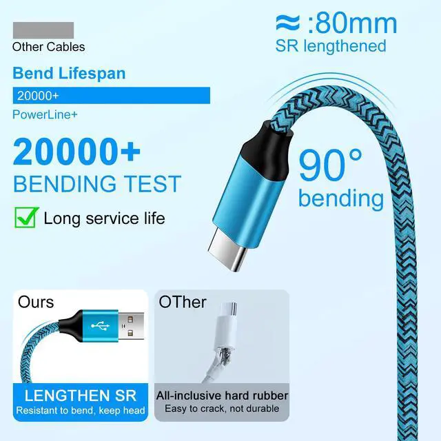 Made of premium fabric jacket design, 20000+ cycles bendings,tangle-free,sturdy,durable & flexible.