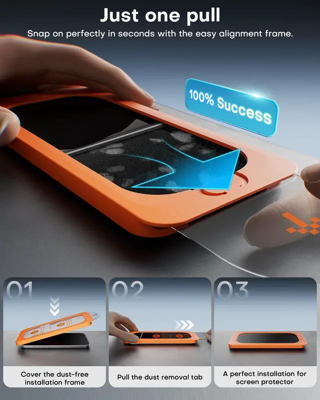 Automatic alignment, easy installation:Provide a quick installation experience for your iPhone 16 Pro matte screen protector. Simply cover the frame of your iPhone 16 Pro, pull out the plastic strip, and the protective glass can be successfully adsorbed to the display surface (Tip: It is recommended to watch the instructional video before installation)