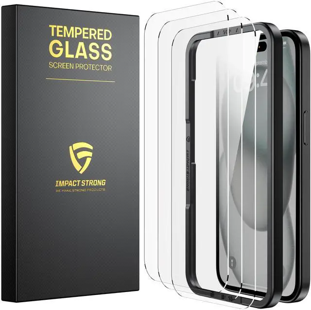 3-Pack Shatterproof Tempered Glass Screen Protector for iPhone 15 / iPhone 16 [Easy Installation Frame] [Bubble Free] [9H Hardness] [Full Coverage] Case Friendly, 6.1 Inch