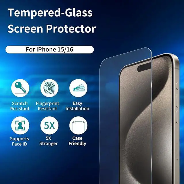 • COMPATIBLE: Designed for iPhone 16 / iPhone 15 (6.1 inch 2024/2023 release). Tempered glass screen protector featuring maximum protection from scratches, scrapes, and bumps