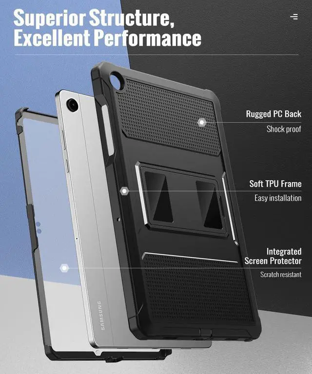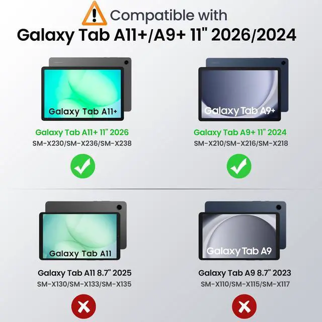 Merchant VideoThe MoKo rugged case is designed for Galaxy Tab ?11+ 11" 2026 (model: SM-X230/SM-X236/SM-X238) and Galaxy Tab A9+ 11" 2024 (model: SM-X210/SM-X216/SM-X218). Strength, beauty, and function come together. Bring more comfort and mind of peace wherever your digital life takes you.