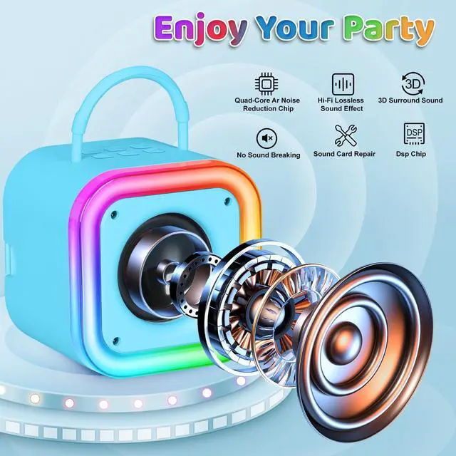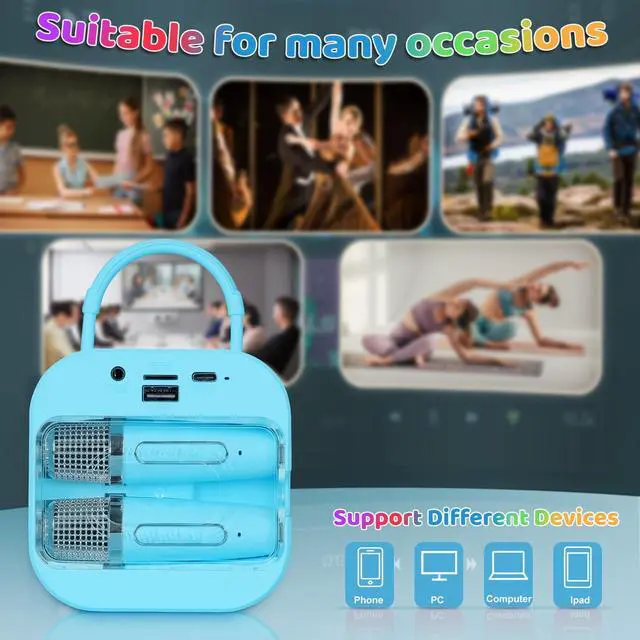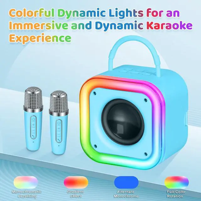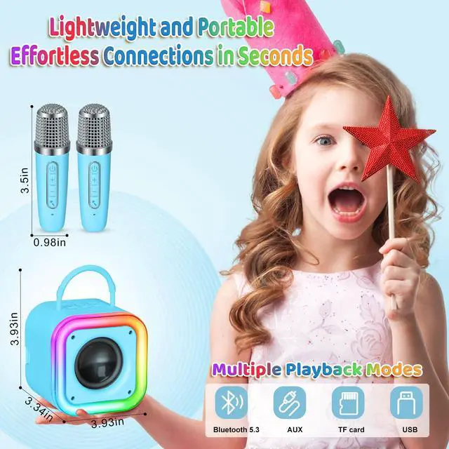 • [Easy Connection and Compatibility] - Bluetooth 5.3 technology connects the Kids Karaoke Machine to your cell phone, tablet or any other device via Bluetooth. The mini karaoke machine also supports TF card as music source. Bluetooth speakers provide you with multiple ways to keep the music playing.