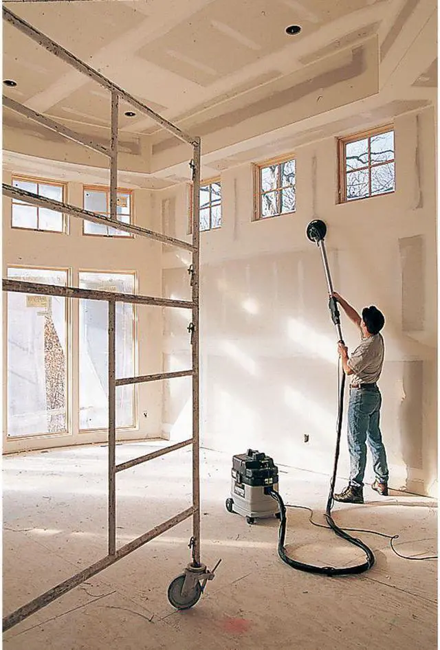 Vacuum not included. Variable speed built-in dust collection hose 1 1/4" vacuum hose is 13 ft. long so that large areas can be sanded in one set up.