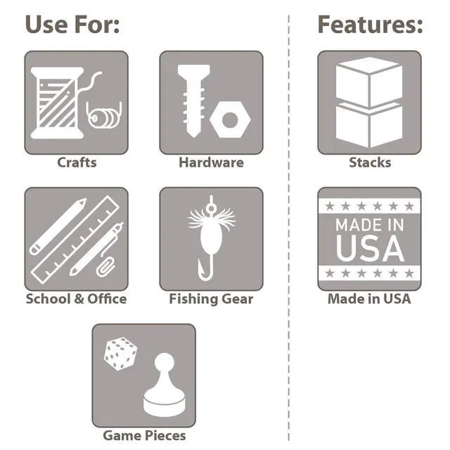 • GREAT FOR- Bolts, nuts, screws and other hardware organizer, beads, beading and jewelry making supplies, electrical and electronic parts, sewing notions and sewing machine accessories, school supplies, office supplies, hobby collecting, tools and accessories, game tokens and pieces