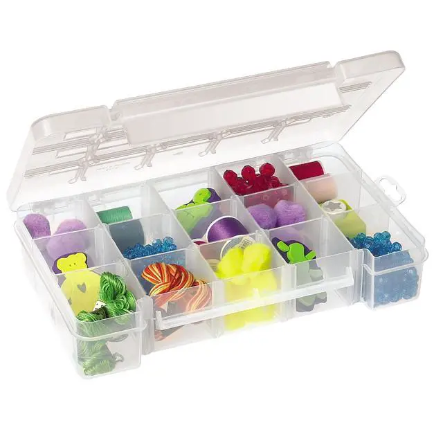 • VERSATILE- Adjustable dividers included with every case, grid design in lid keeps items in compartments from migrating and allows you to create custom storage compartments. Rounded compartment bottoms make it easy to retrieve small items.