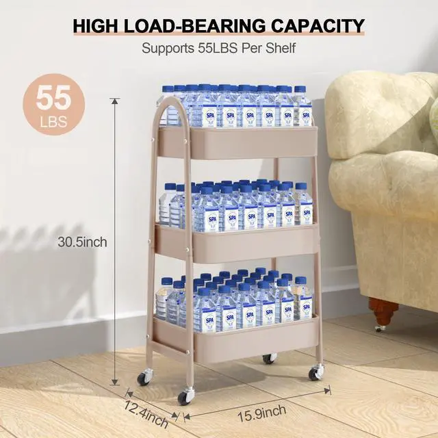 3 Tier Rolling Cart with Multiple Colors Available