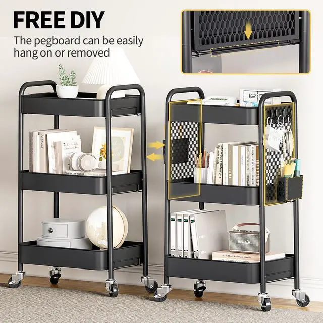 Looking for a versatile & practical storage solution? Look no further than the Toolf 3 tier metal rolling cart with pegboard. This sturdy cart is perfect for organizing your kitchen, home, office, bathroom, or dorm, the 3 spacious shelving baskets provide ample storage space for all your essentials. Toolf also add pegboards, hanging holders, hooks for vertical storage. Check this video to see how our customer like this cute rolling storage cart.