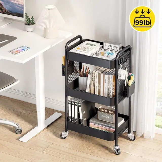 This TOOLF three tier rolling cart with wheels is widely used to store baby nursery supplies, office & teacher essentials, books, diaper, and craft art supplies. The rolling storage cart is also ideal to use at laundry, pantry, kitchen, living room, bathroom, kid's room, dorm, etc.