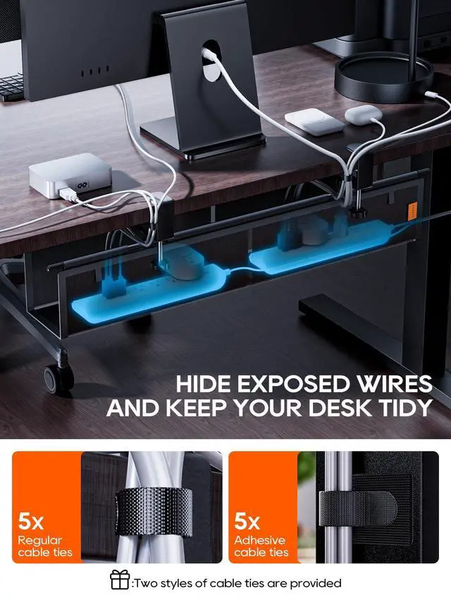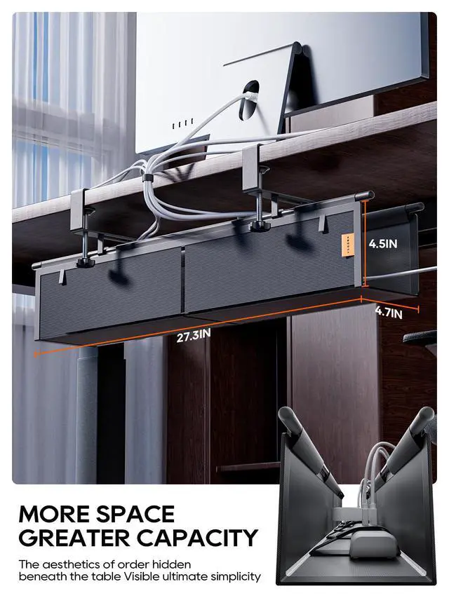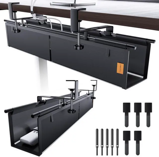 Under Desk Cable Management Tray No Drill, Cable Ties Included, Eco-Friendly Canvas Material, Mesh Design for Heat Dissipation, Cable Organizer/Storage for Standing Desk(27inch, Black)