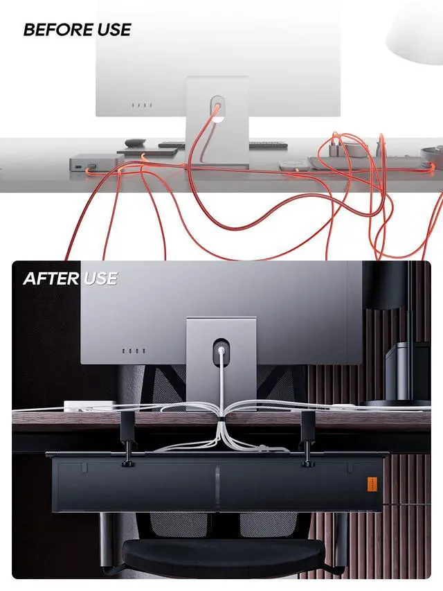 ECO-FRIENDLY MATERIALThis cable organizer is made of high-quality canvas, which combines practicality and aesthetics. The mesh design also greatly improves heat dissipation