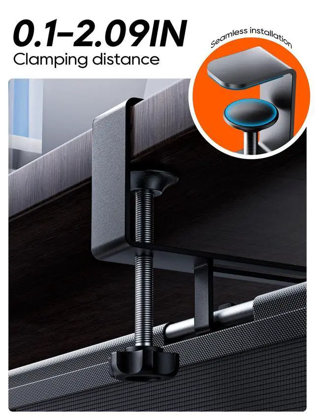 INSTALLATION INSTRUCTIONSa. Compatible with tables less than 1.7 inches thick. b. The effective installation depth of the table needs to be 2'' or more. If your desk has a curved edge OR there is an obstruction on the back side of your desk, resulting in an effective depth of less than 2 inches, which is not suitable for installation. Please purchase it at your discretion