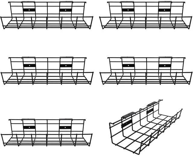 Under Desk Cable Management- 6 Pack Cord Organizer. Metal Wire Cable Management Tray for Office, Studio and Home. Super Sturdy Under Table Cable Managements - Black Cable Organizer