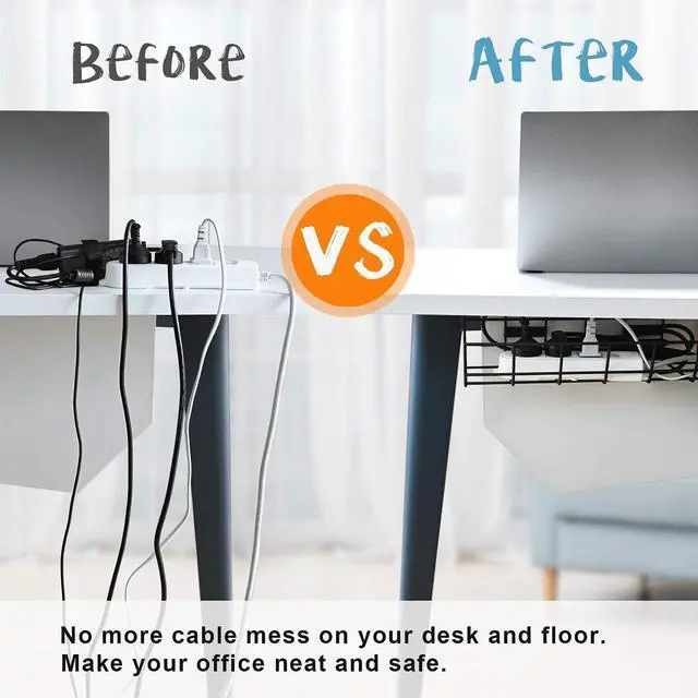 SAVE SPACE - This under desk cable organizer helps with managing messy wires such as Ethernet wires, power cable, power strips, USB hubs, HDMI, cats5/cats6 cables, fax lines, telephone wires, etc. desk cable management tray can keep the wires protected in the office or home, neatly organized and keep them away from our sight.