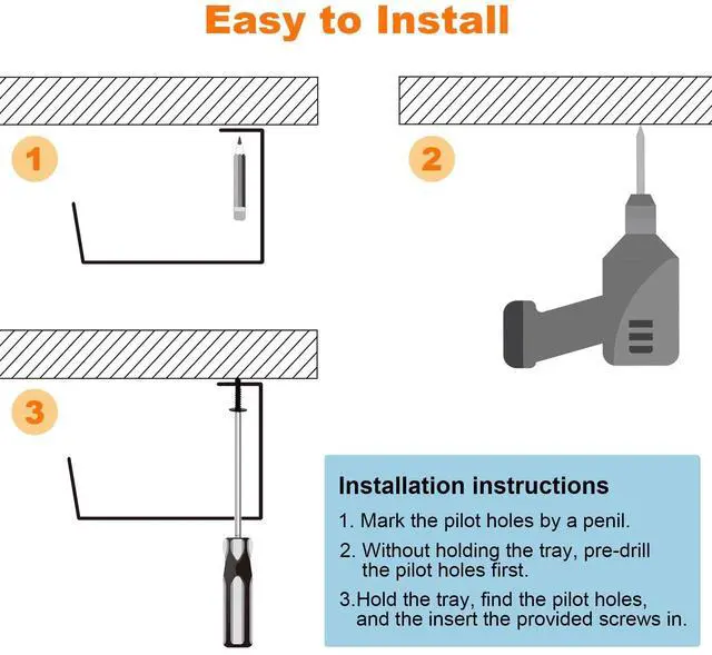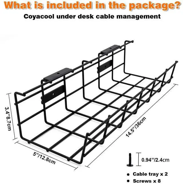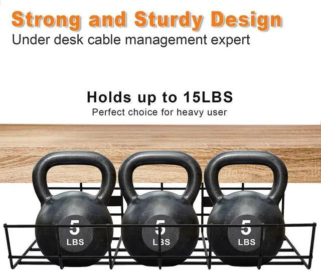 STURDY DESIGN - This cable management under desk trays are built with metal material, these cable trays are super- sturdy and extra-durable and also can easily hold up to15lbs, if installed properly and come with 30 screws that improve stability and keep your devices and office supplies free from damage.