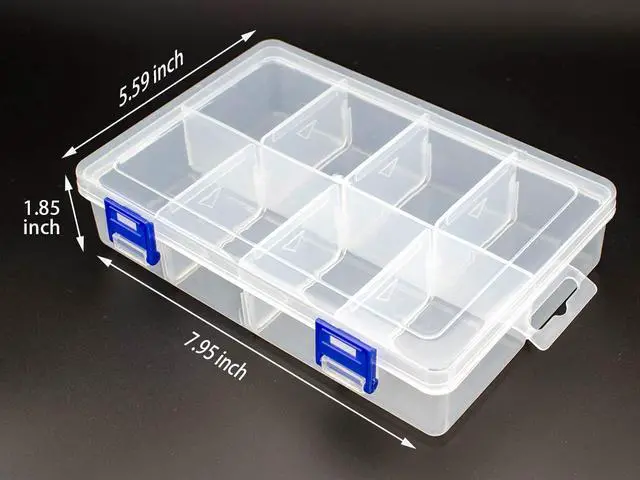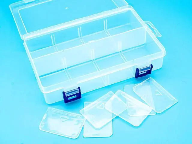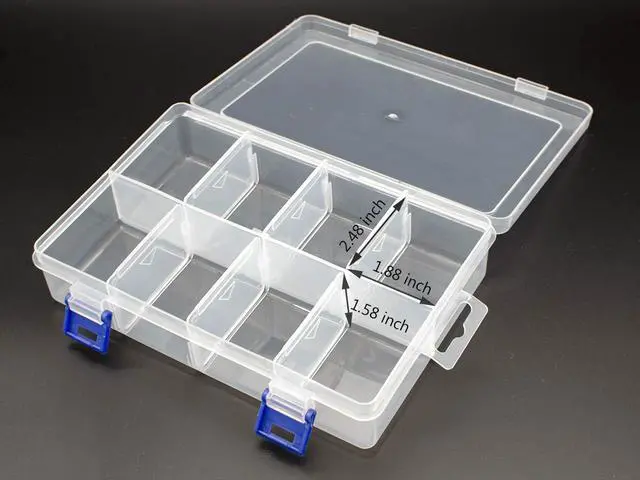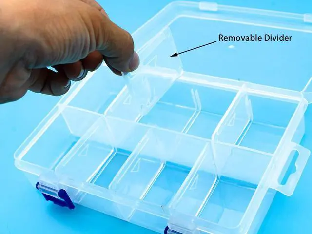 This is a multi-purpose parts sorting box, using high quality transparent PP plastic injection molding, you can always see what items are stored in the box, the convenient blue lock for safty stock. Internal insert pieces can divide the box for different stock size. The hang tab on one side of the box can be suspended as needed. You can use this storage box to organize small objects like earrings, necklace, rings, beads, hair clips, bracelets, small accessories, studs, screws, bolts, nuts, gaskets, electronic components, etc.