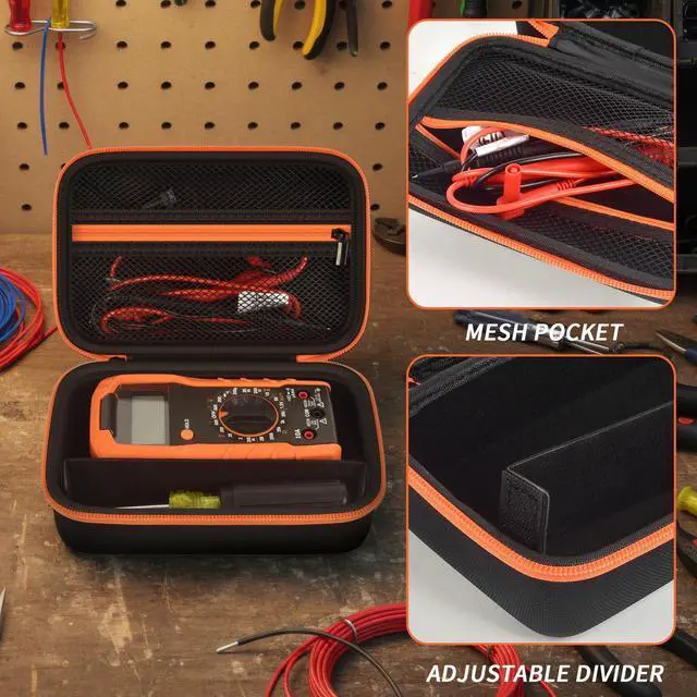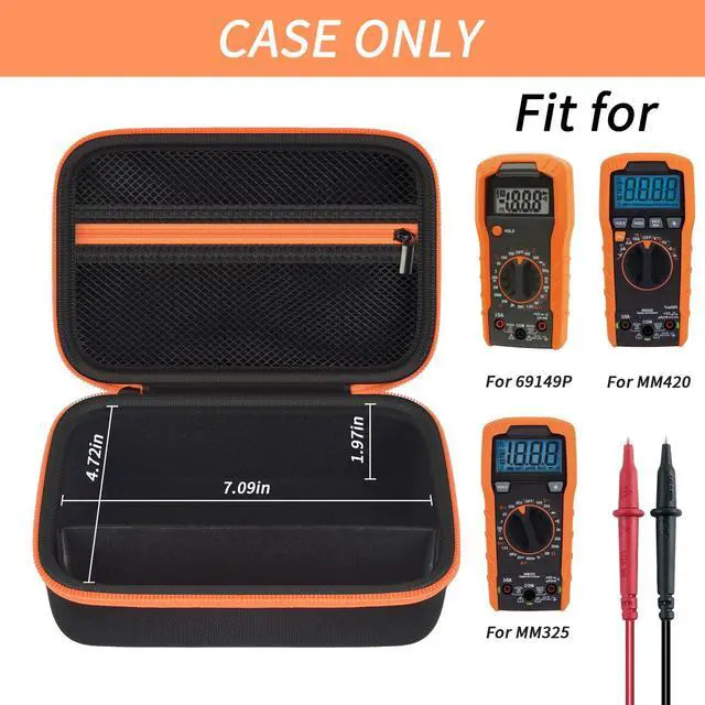 Fits multimeters up to 7.17*4.33*1.77 in. Adjustable divider helps accommodate similar models like MM720, MM320, ET600, ET140, 80023P.